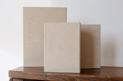 Your album is printed on fine art cotton matte paper using pigment-based inks for long-lasting archival quality. These albums aren't available through any retailer offering direct-to-consumer sales. Featuring stunning embossing and covers in an array of linen, suede, velvet, and leather fabric options, these albums are truly a piece of artwork on their own.