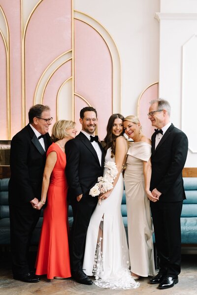 Bride + Groom with Mom, Dad, Siblings, Spouses, Children