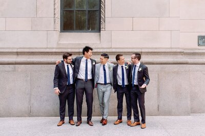 Let's chat about your wedding party! This is when the fun really begins! After you share your first look, depending on locations and timing of the day, your wedding party will join us for portraits! The best time to do them is before your ceremony, so that your wedding party will be free to mingle at cocktail hour if they wish!