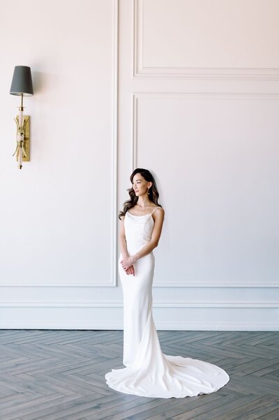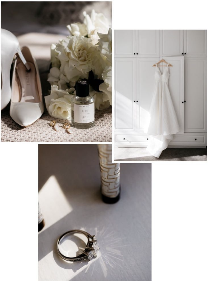 The room where you get ready in should be bright with plenty of natural light and soft muted colours. Hotel rooms with busy, cluttered, clunky furniture, patterned carpets and bold wallpaper can take the attention and focus away from you. Hotel rooms also often have tungsten or florescent lighting, which will give your skin an orange hue and is not flattering on any skin tone - so you may see me turn off the lights in the room to allow all the natural light to shine through and to showcase your natural skintone. Rooms with light, neutral colours will calm nerves and create dreamy photos. White, beige, cream, grey - the whole range of pastel shades are perfect.